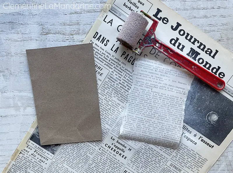 • pour la page de roman, si tu n’as pas ça en stock, tu peux utiliser du journal, un magazine, un vieux document du travail… ou imprimer un texte si vraiment tu ne trouves pas