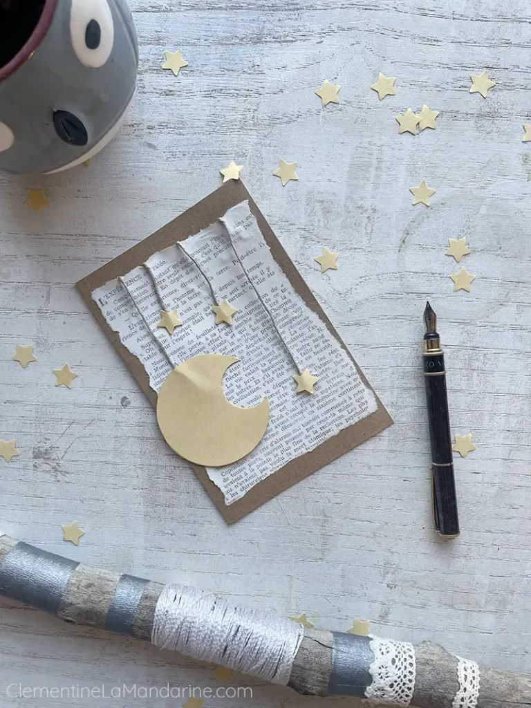 Et évidemment, j’aime beaucoup fabriquer ces cartes moi-même, et ça avec le plus possible de matériaux récupérés.